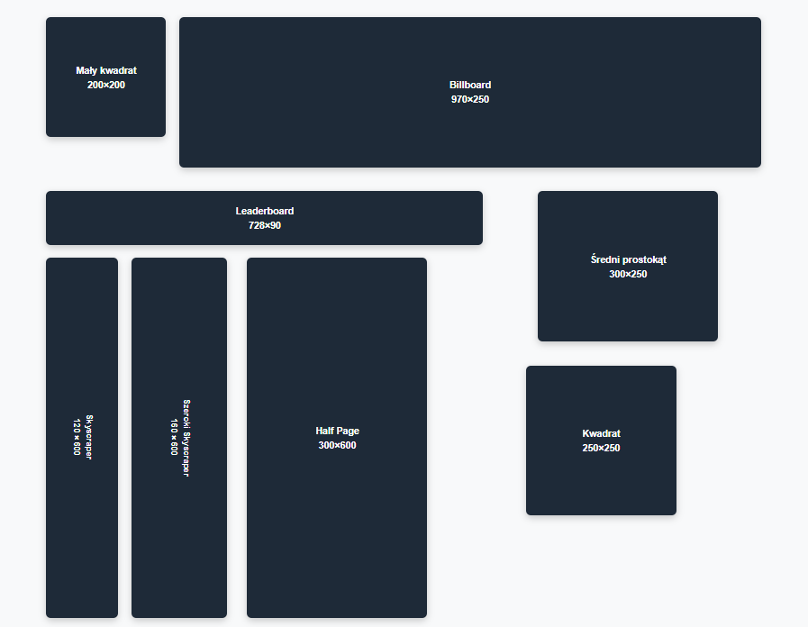 Przestrzenie reklamowe dostępne na praca.rejestrdawcow.pl oferują realną wartość komunikacyjną. Prezentujemy je w rzeczywistych rozmiarach, z możliwością wyboru konkretnej lokalizacji: od billboardu na górze strony, przez banery w treści ogłoszeń, po formaty boczne i mobilne.